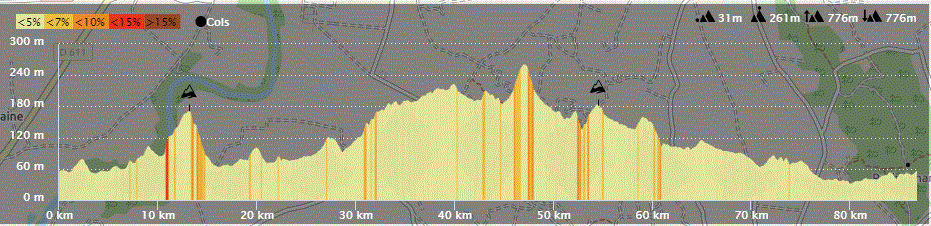 1ere ascension, le col de Banyuls, puis basculement dans la plaine de Rosas, après 30 kms de descente et de plat, 2e ascension le col del Bosc de la Margalla tout près de l'Abbaye de San Père de Rodès.